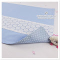 人気の高い上品なサークルレースをブルーのオックス生地に縫い付けました。
