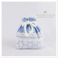 人気の高い上品なサークルレースをブルーのオックス生地に縫い付け、レースで飾りました。