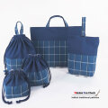 幼稚園・保育園・小学校の入園入学グッズ、に男の子のナチュラルなチェックのレッスンバッグ・お着替え袋、体操服入れ(体操着)巾着袋などセットでご用意させていただいております。