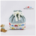 くるま・働く車柄のボーダーとブルーのストライプを組み合わせ、男の子用に和やかな柔らかい雰囲気にお作りをさせて頂きました。