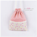 給食袋【大】25×20cm:小さめ巾着袋とお揃いの入園グッズ・通園グッズ 手作り(ハンドメイド)の女の子 小花ピンク リバティ風~入学入園グッズ セット商品(裏付)です。♪♪