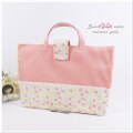 フタ付き(フラップ付き)手提げ大きめレッスンバッグ(リバティ風のピンク・パープル・黄色の小花柄とストライプの切り替えが可愛い!女の子用)