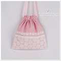 給食袋:巾着袋とお揃いの通園グッズ・入園グッズ 手作り(ハンドメイド)女の子のサークルレースの刺繍~入園入学グッズ セット商品(裏付)です。♪♪