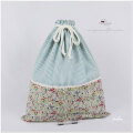 手作り入園グッズ(ポケット付・体操服入れ・お着替え入れ):ハンドメイド:巾着袋【特大】 可愛い上品キュートなリバティ風花柄ストライプ♪♪