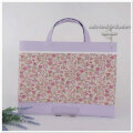 入園グッズ・入学グッズの手提げレッスンバッグ(通園バッグ)とお揃いの女の子の綿麻の花柄&パープルの手作りの入園入学グッズ セット商品(裏付)です。 ♪♪