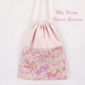 給食袋【大】25×20cm:小さめ巾着袋とお揃いの入園グッズ・通園グッズ 手作り(ハンドメイド)の女の子用 小花ピンク リバティ風~入学入園グッズ セット商品(裏付)です。♪♪