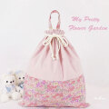 持ち手付き巾着袋【特大】(お着替え袋 体操服入れ)45×40cm(ハンドメイド)とお揃いの入園【幼稚園・保育園】グッズ、女の子用 小花ピンク リバティ風 入学入園グッズ セット商品(裏付)です。♪♪