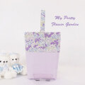 花咲く彩りと淡いラベンダーが織りなす、やさしさをそっと包む可憐な小花柄は、上品さと可愛らしさのバランスが取れたデザインです。