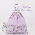 持ち手付き大きめ巾着袋【特大】(お着替え袋 体操服入れ)45×40cmとお揃いの手作り 幼稚園・保育園グッズ、上品な小花柄 パープル~入学入園グッズ セット商品(裏付)です。♪♪