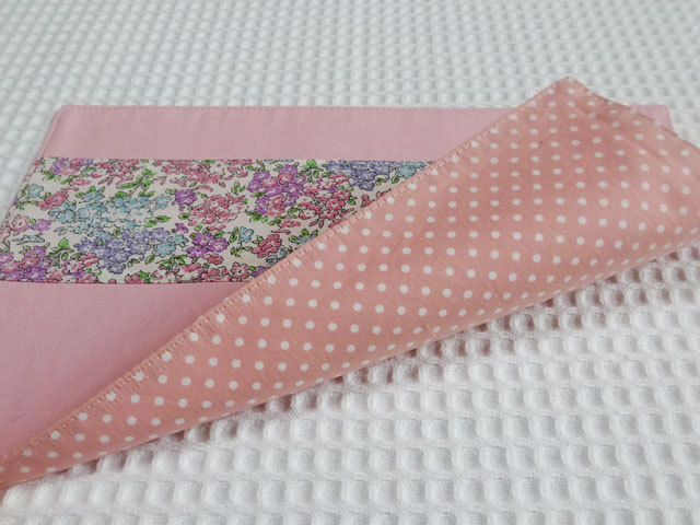 ランチョンマットの裏側はピンク水玉柄です。