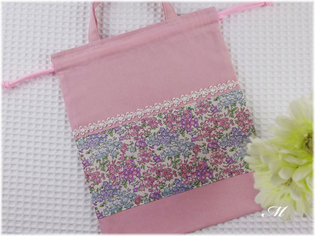 • リバティ 入園入学グッズ 巾着袋【M】 持ち手付き 30×25 体操服入れ お着替え袋 女の子 オシャレなトム&レース