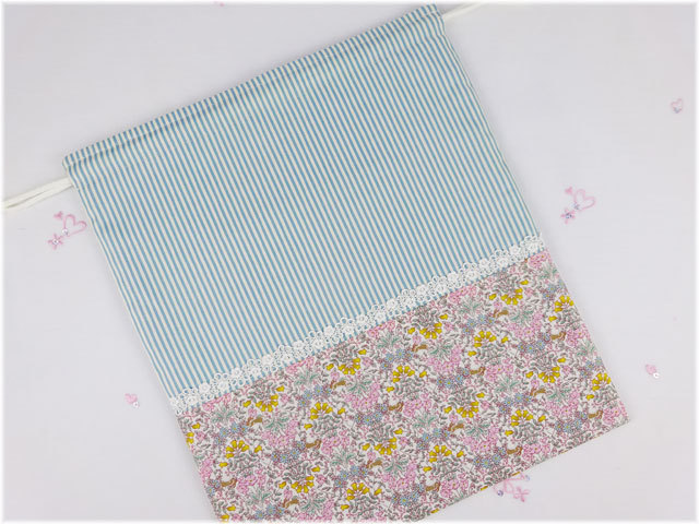手作り入園グッズ(ポケット付・体操服入れ・お着替え入れ):ハンドメイド:巾着袋【LL】 可愛い上品キュートなリバティ風花柄ストライプ