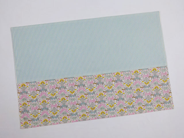 リバティ風小花生地とブルーストライプ生地の上品な2段切り替えです。