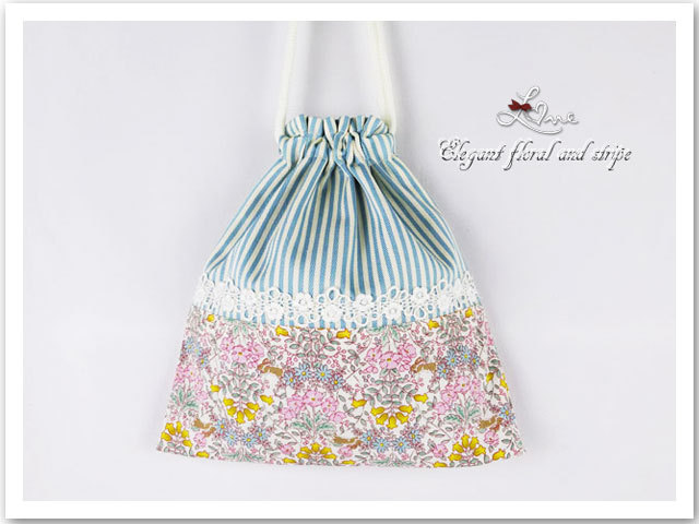 【給食袋:巾着袋】入園グッズ・通園グッズ 手作り(ハンドメイド)の上品なリバティ風 小花~入学入園グッズ セット商品(裏付)です。♪♪