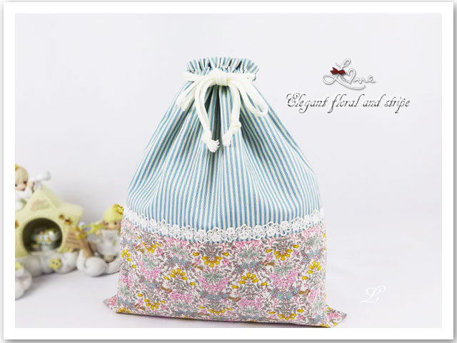 巾着袋【L】(体操服入れ・お着替え袋)35×30cmとお揃いの入園グッズ・通園グッズ 手作りの上品なリバティ風 小花~入学入園グッズ セット商品(裏付)です。♪♪