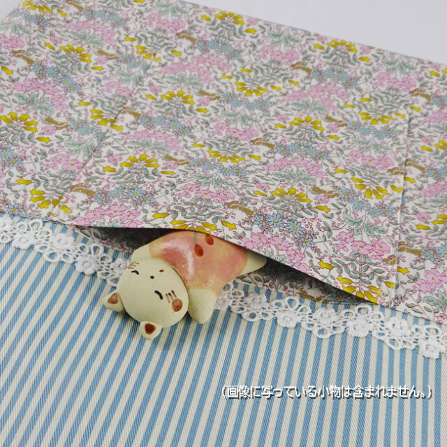 ポケット付きのお着替え袋とお揃いの手作り【幼稚園・保育園】グッズ、上品なリバティ風 小花~入学入園グッズ セット商品(裏付)です。♪♪