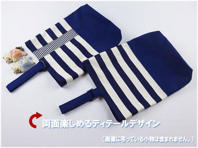 入園グッズ 手作り(ハンドメイド)シューズバッグ(上履き入れ)ボーダー デザイン 紺色(コン)お揃いのおしゃれな男の子・女の子 入園入学グッズ セット商品(裏付)です。