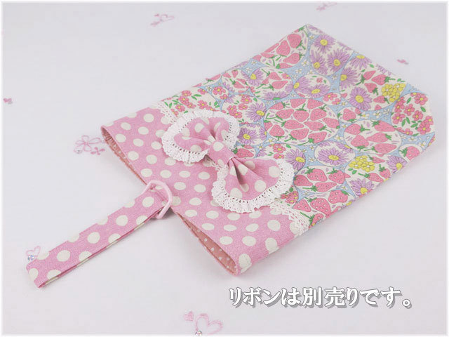 シューズバッグ(上履き入れ)とお揃いの通園・入園グッズ 手作りのおしゃれ 可愛い リネンいちごの入園入学グッズ セット商品(裏付)です。