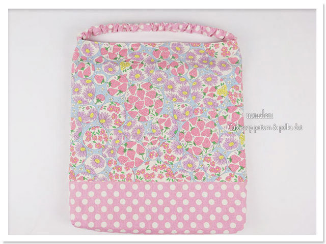 入園グッズ・通園グッズ 手作りのいちご 座布団カバー・防災頭巾カバーとお揃いのおしゃれ 可愛いセット入園入学グッズ セット商品(裏付)です。