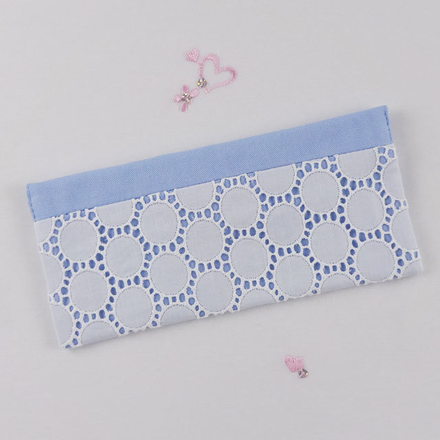 カトラリーケース(封筒型)とお揃いの入園グッズ・通園グッズ 手作り通園・入園グッズ(女の子用)のサークルレースの刺繍~セット入園入学グッズ 商品(裏付)です。♪♪