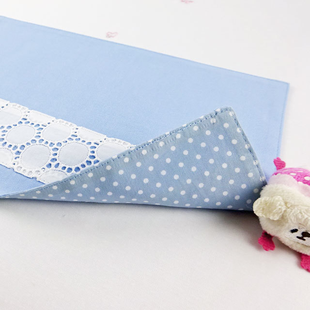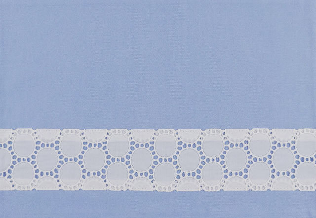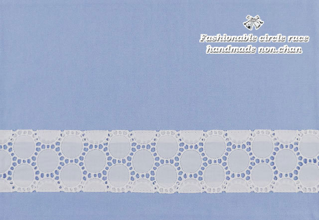 人気の高い上品なサークルレースをブルーのオックス生地に縫い付けました。