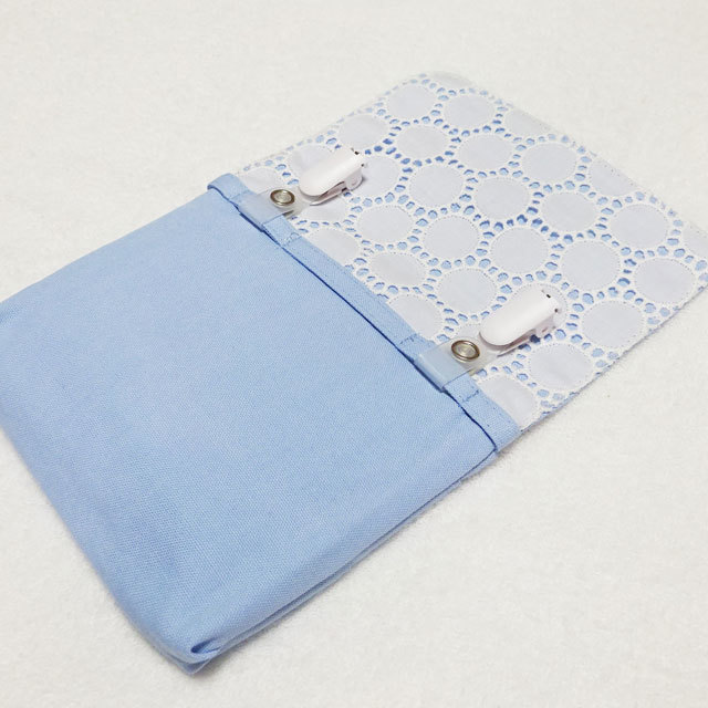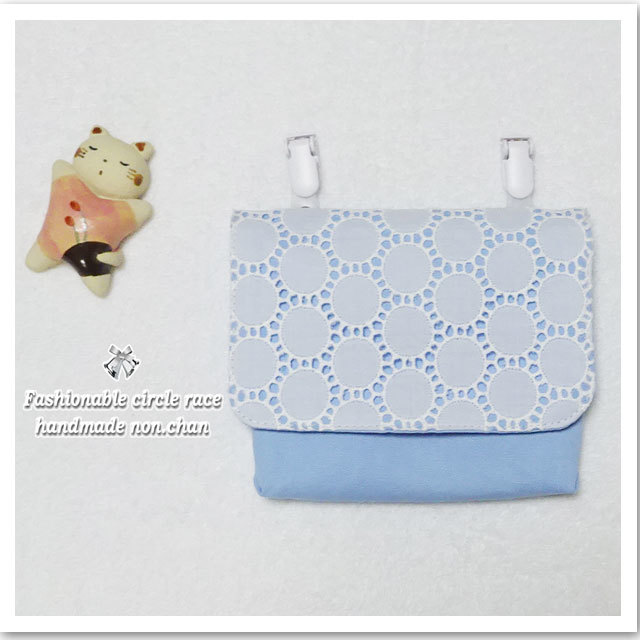 人気の高い上品なサークルレースをブルーの生地に縫い付けてあります。