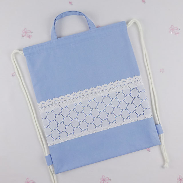 • 入園グッズ ナップサック 手提げ 体操服袋 サークル レース 刺繍 ブルー 女の子用