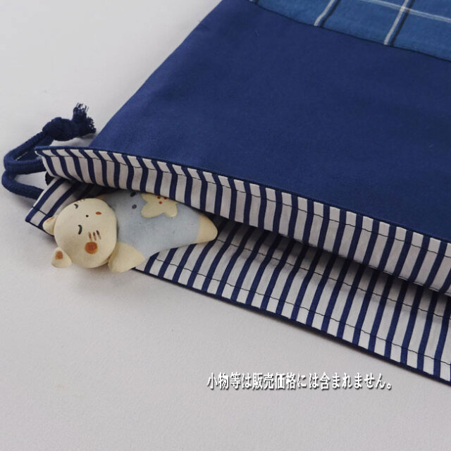 入学グッズ:給食袋【大】25×20cm:小さめ巾着袋とお揃いの男の子 女の子♪ 男女兼用できるチェックのセット商品(裏付)です。