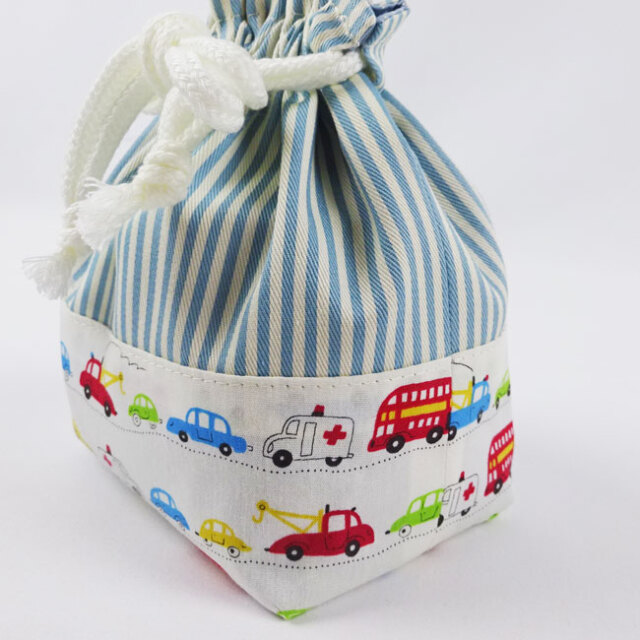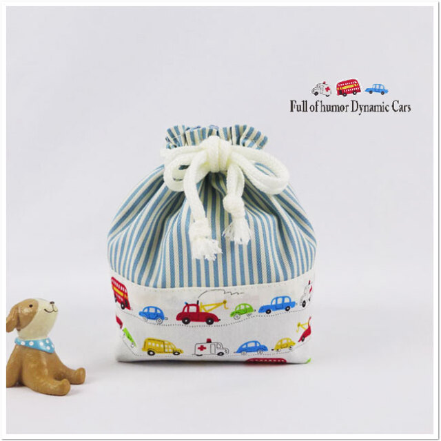 車柄の持ち手付き巾着袋(体操着袋・お着替え袋)