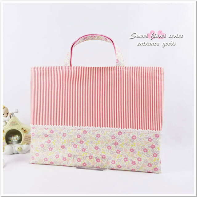 幼稚園・保育園・小学校の入園入学グッズ、に女の子の可愛い!小花柄のレッスンバッグ・お着替え袋、体操服入れ(体操着)巾着袋などセットでご用意させていただいております。