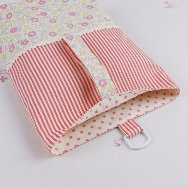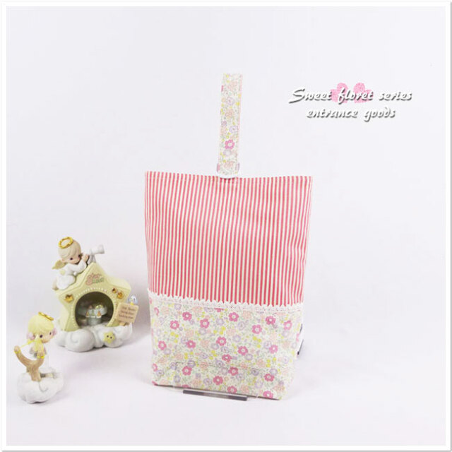 手提げレッスンバッグ3点セットとお揃いの入園・通園グッズ(ハンドメイド)女の子 小花 ピンク(裏付)です。♪♪