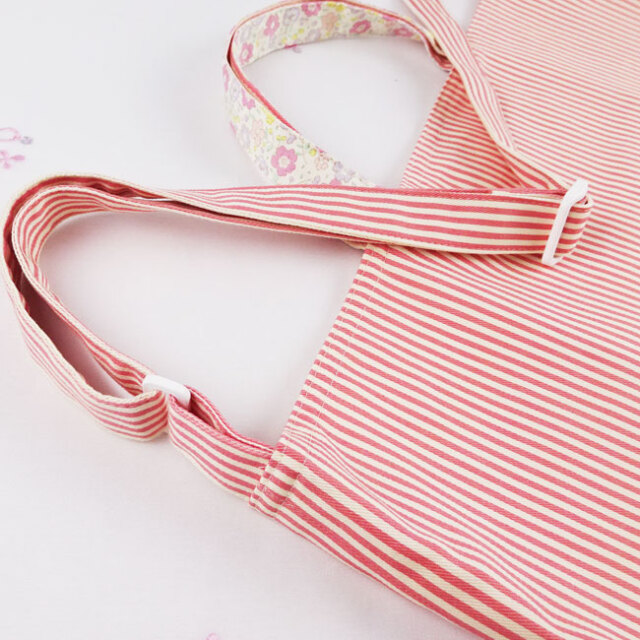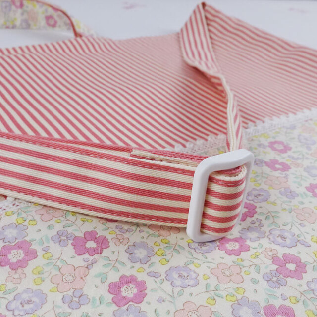 肩紐はストライプの共布を使用してお子様の愛らしさを引き立ててくれます。