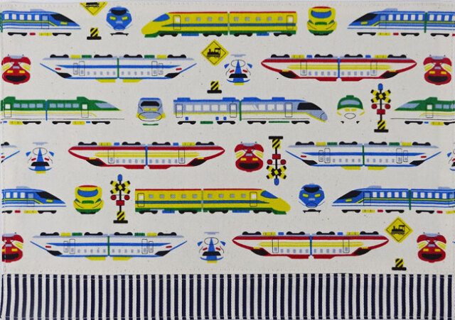 ランチョンマットとお揃いの通園・入園グッズの男の子*新幹線 電車 踏切 セット商品(裏地付き)です。