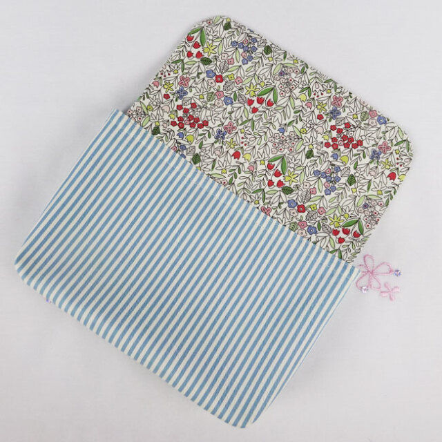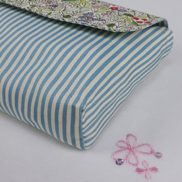 手作りお弁当袋(横入れタイプ・封筒型):女の子 上品キュートなリバティ風花柄ストライプ