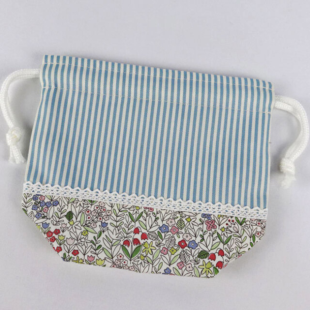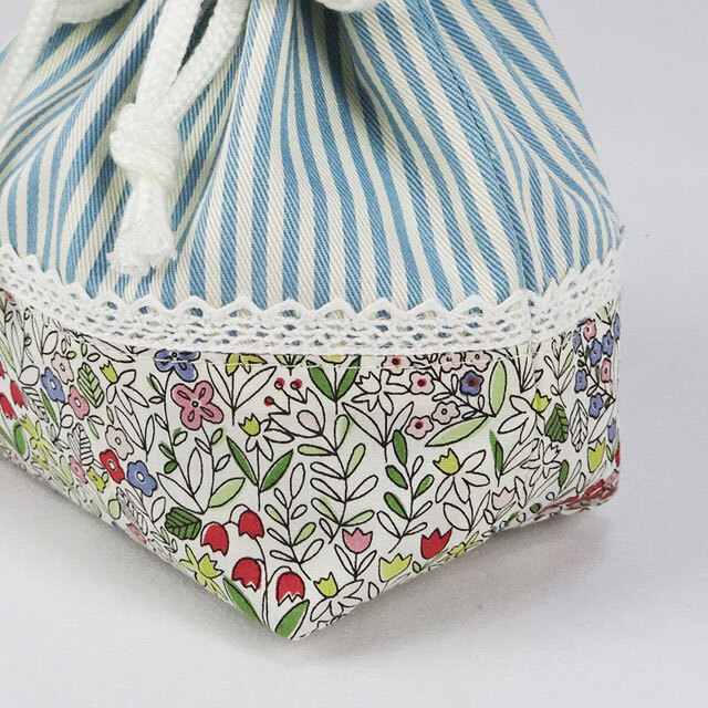 入園グッズ・通園グッズ 手作り コップ入れ:巾着袋 上品なリバティ風 小花 入学入園グッズ セット商品(裏付)です。