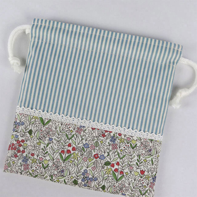 【給食袋:巾着袋】入園グッズ・通園グッズ 手作り(ハンドメイド)の上品なリバティ風 小花~入学入園グッズ セット商品(裏付)です。♪♪