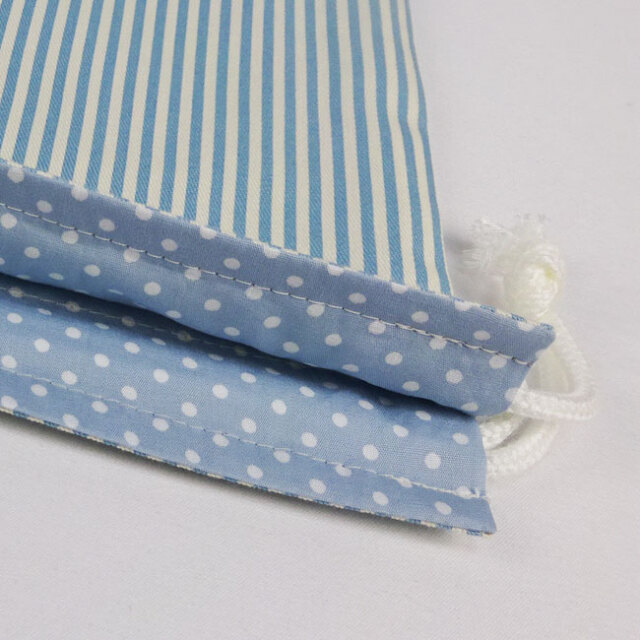 ブルーのストライプ生地と切り替え、レースをあしらってオシャレに飾りました。