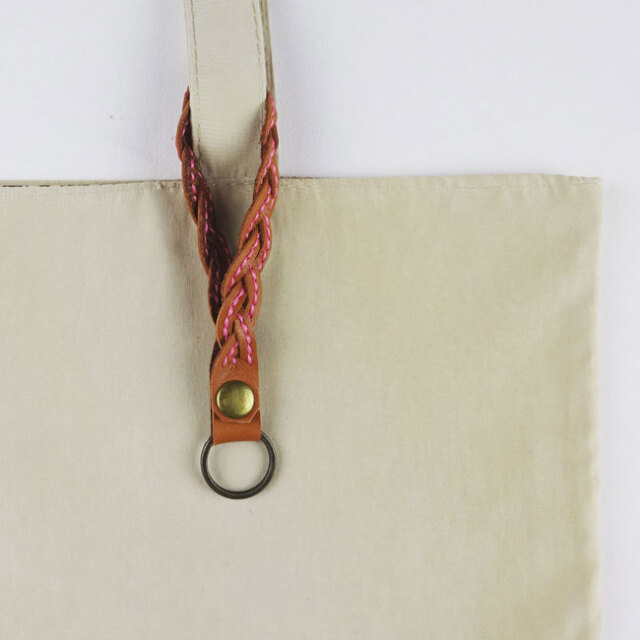 編み込み部分には、ピンクのロウ引き糸をステッチしました。